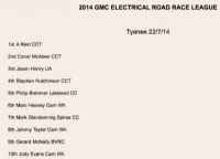 Road racing action was offered up this evening by Bann Wheelers on their Tyanee course. Again the Carn racers were in the thick of the action emulating the mountain bikers with three men in the top 10. Fresh from track action at the national championships Marc Heaney crossed the line in 5th, Johnny Taylor took 8th with Jody Evans rounding off the top 10 finishers. Well done guys!