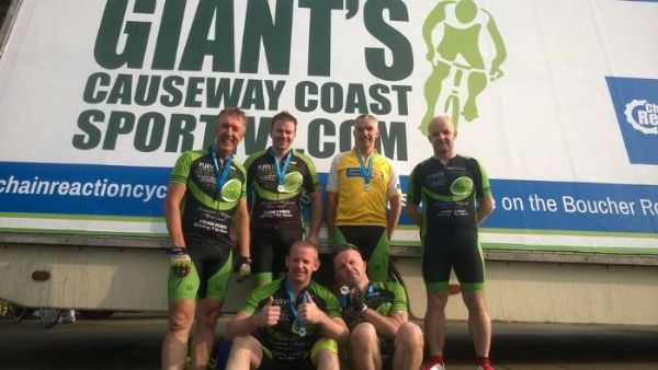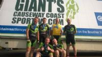 Today, Adrian, Aidan, Anthony, Barney, Ciaran and Tony completed the Giants Causeway Coast Sportive. The GCCS is a 116 miles, 8800 foot cycle which starts and finishes in Ballycastle, and takes in the north coast and some of the Glens of Antrim, culminating with a spin out over the Torr Head Road.