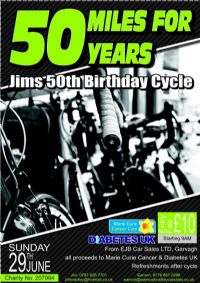 Bradley has organized a charity cycle – "Fifty Miles for Fifty Years”.