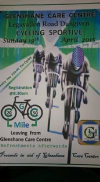 This weekend’s local sportif is in Dungiven -- the aim is to raise funds in aid of the Glenshane Care Centre. Choice of two routes – 20 miles and 50 miles. Cost £10.