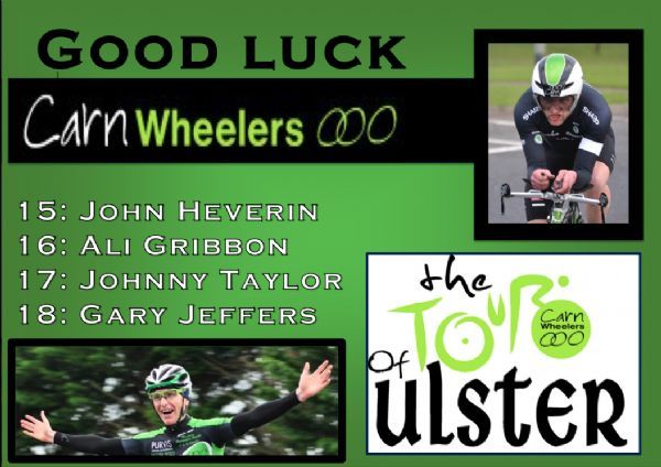 Good luck to Ali Gribbon, Johnny Taylor, John Heverin and Gary Jeffers racing for Carn Wheelers in the Tour of Ulster this weekend. With all the preparation done and arrangements finalised we're set to light the fuse on what will be a fantastic weekends racing that'll make the Giro organisers a little nervous!
