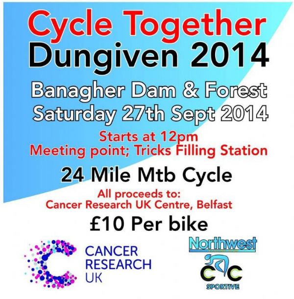 The cycle departs Tricks filling station, The GO station outside Dungiven on the right hand side, at 12pm with a £10 donation per bike going to Cancer Research UK's centre in Belfast. This extremely worthwhile charity is deserving of your support.